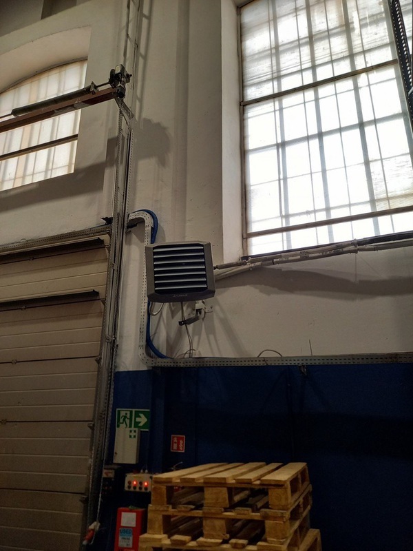 Typ ogrzewania: instalacja z zastosowaniem nagrzewnic wodnych i destratyfikatorów około 90% i instalacja grzejnikowa około 10%
